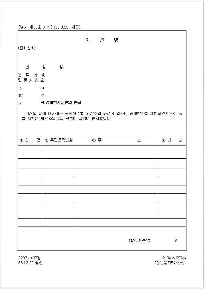 | 무료 세무회계서식 / 공매, 수의계약 대행 통지서 양식 (0) | 2026.01.01 |